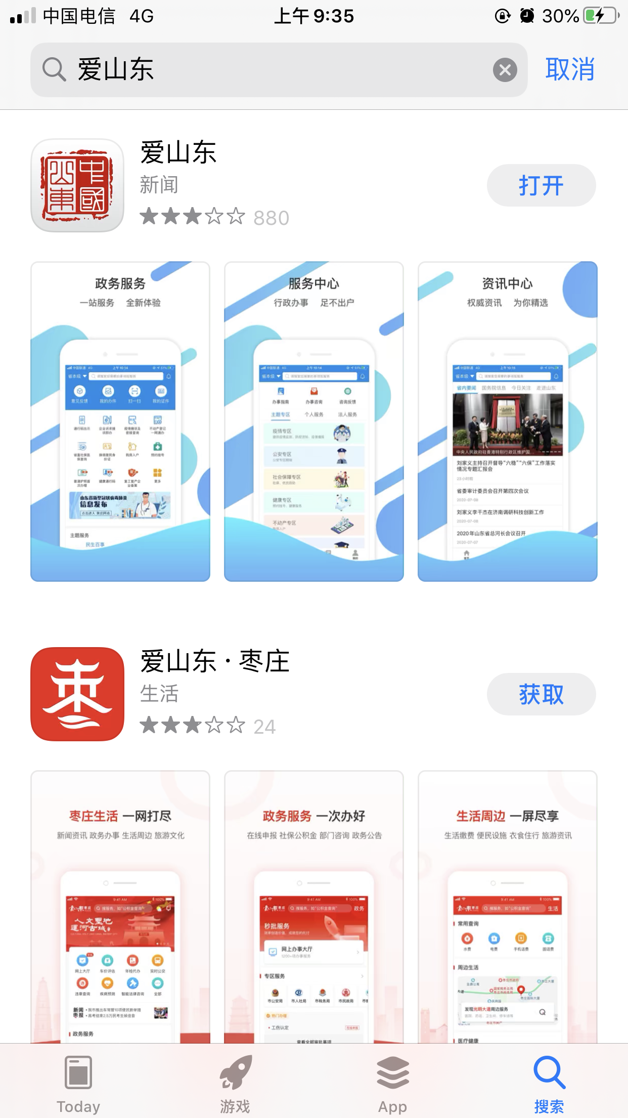 1.手机应用商店下载并安装爱山东APP