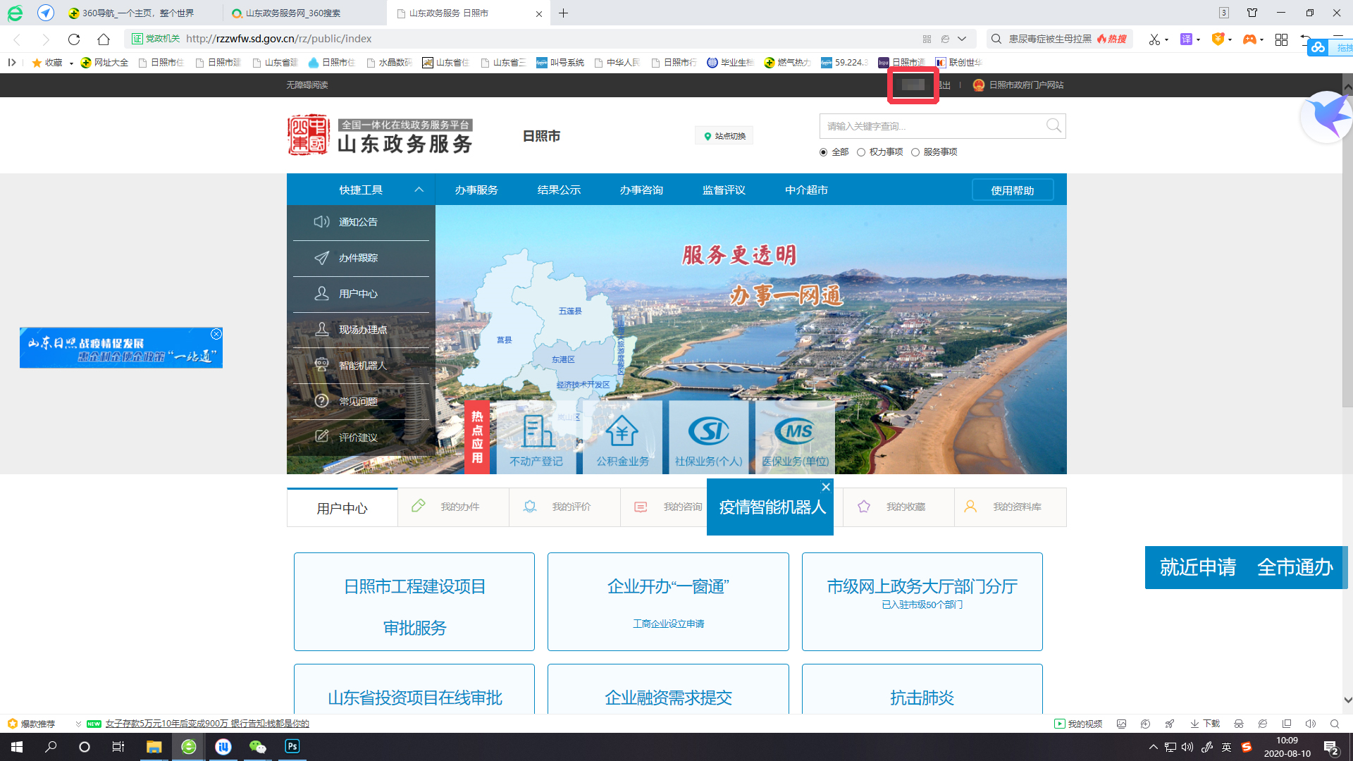 1.在山东政务服务网(日照站)点击“办事服务”模块。